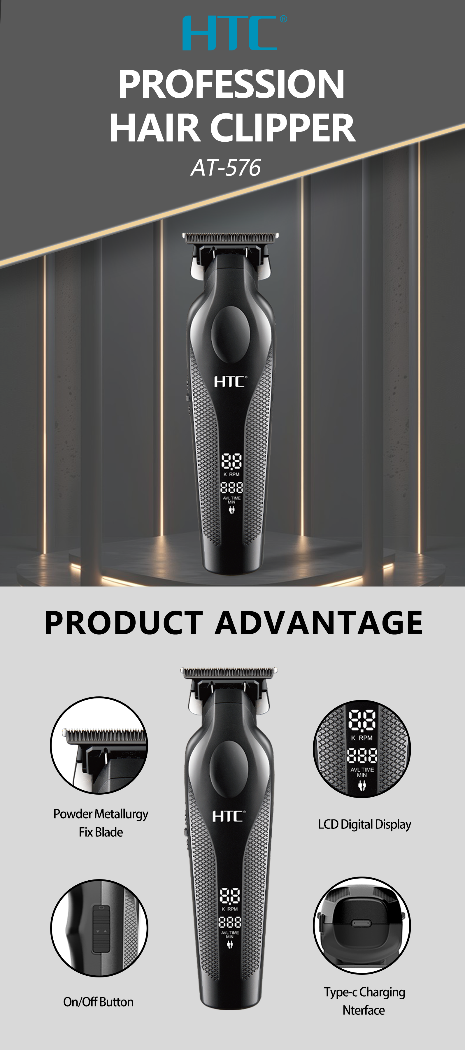The HTC AT-576 is a high-performance cordless trimmer designed for barbers and serious home groomers. With a strong motor, zero-gap cutting, and a long-lasting lithium battery, it delivers smooth, professional results with every use. Perfect for clean fades, sharp outlines, and all-over hair trimming, this clipper is built to handle any style with confidence.