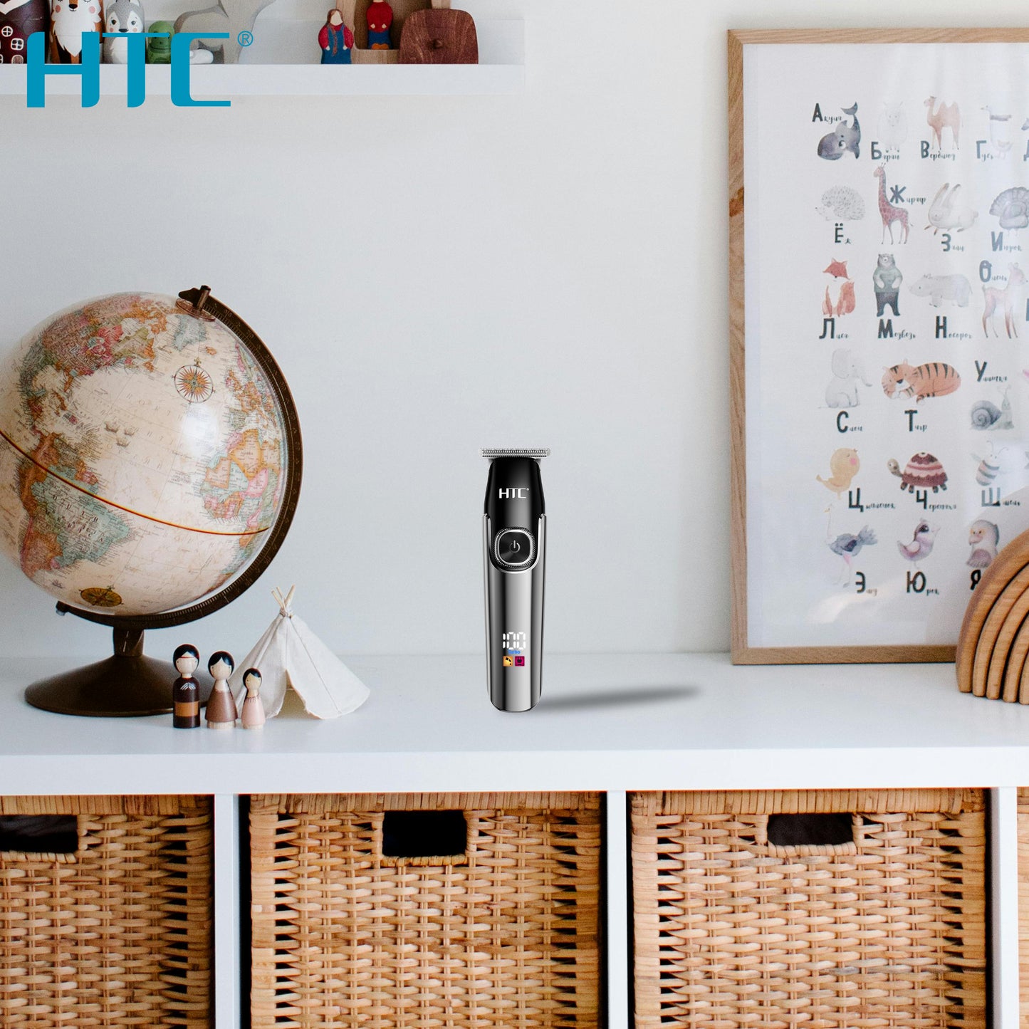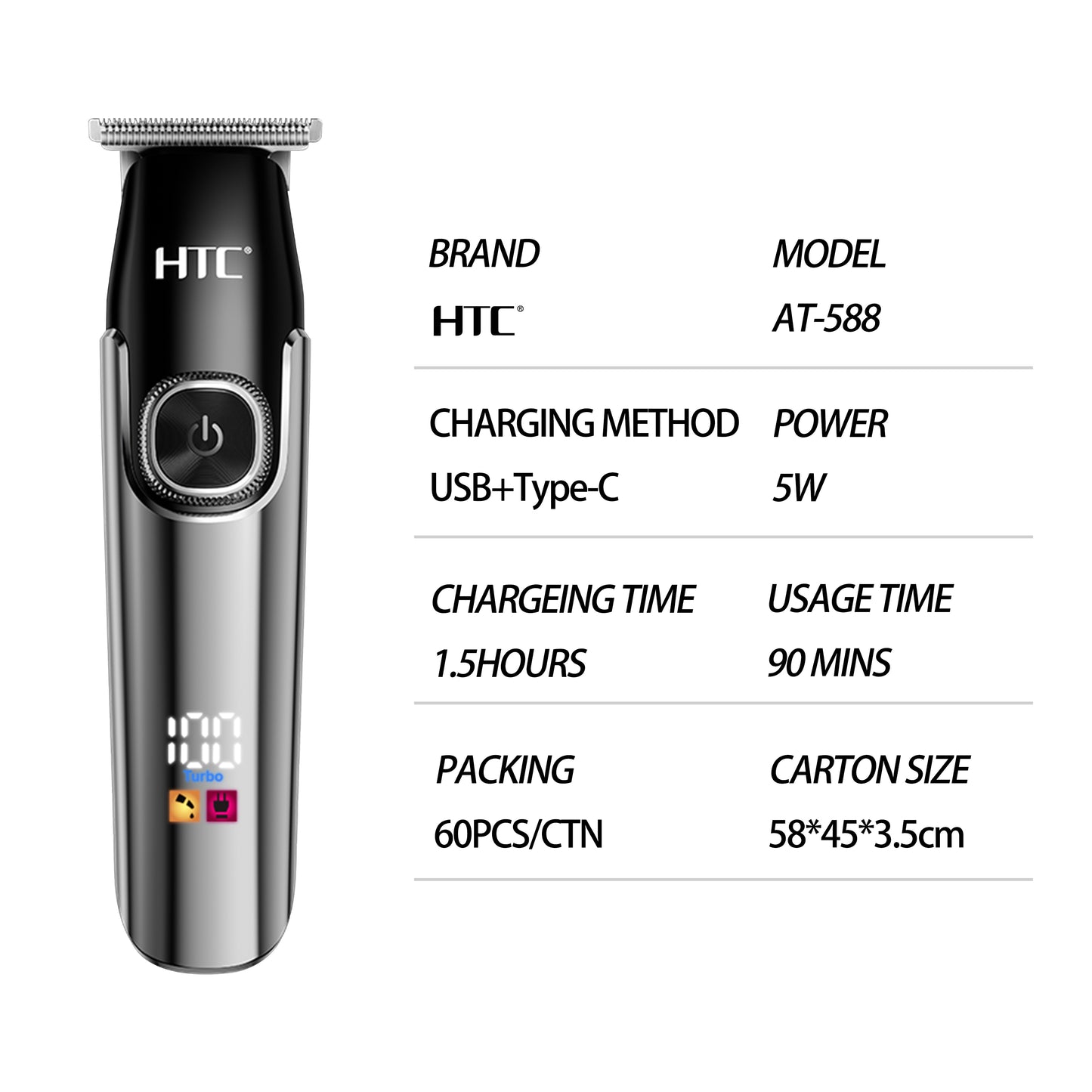 HTC Hair Clipper, Beard Trimmer with 2 Speed Settings, USB Rechargeable Cordless T-Shape Shaver with LED Display and 3 Combs, AT588 (BLACK)